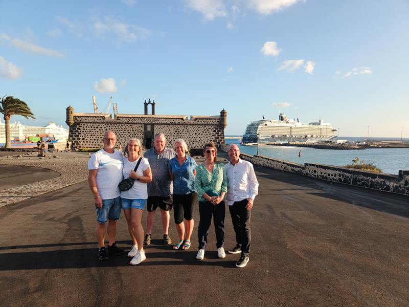 Am Castillo de San José mit Blick auf die Mein Schiff 7