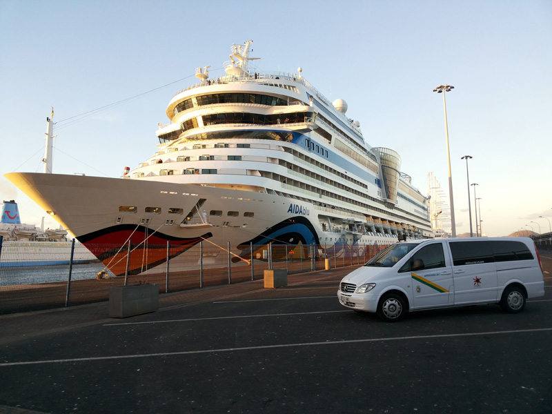 Die AIDA im Hafen von Lanzarote mit Taxi von Guido