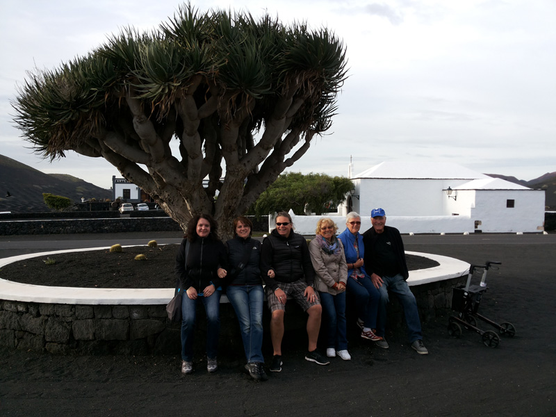 Gruppenbild vorm Drachenbaum und Kapelle im Hintergrund
