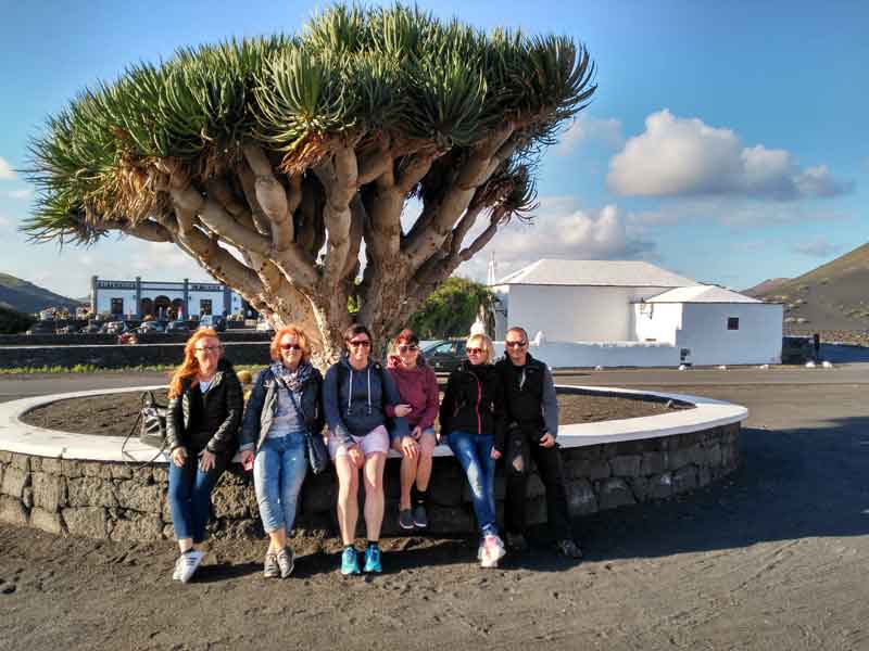 Drachenbaum mit Kapelle im Weinanbaugebiet La Geria