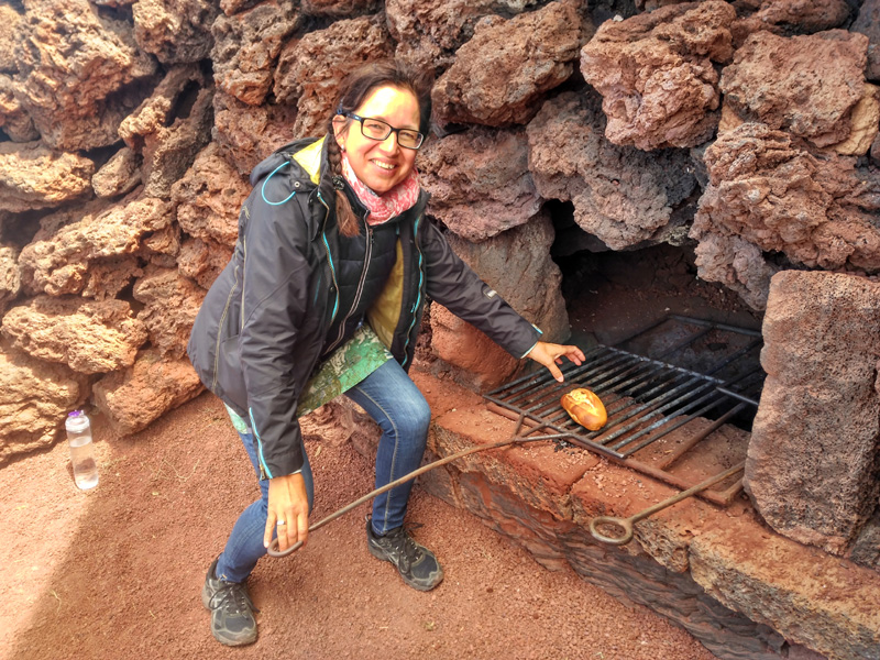 Toasten auf einen Vulkangrill im Timanfaya Nationalpark