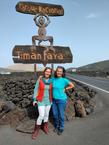 Vor dem Symbol "El Diablo" vom Timanfaya Nationalpark